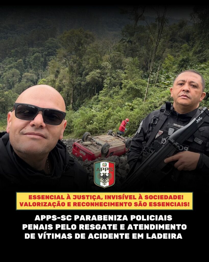 A APPS-SC vem a público destacar a atuação exemplar dos Policiais Penais associados Carlos Rossato e Juliano Camargo, que protagonizaram um verdadeiro ato de coragem, profissionalismo e humanidade na manhã da última sexta-feira.